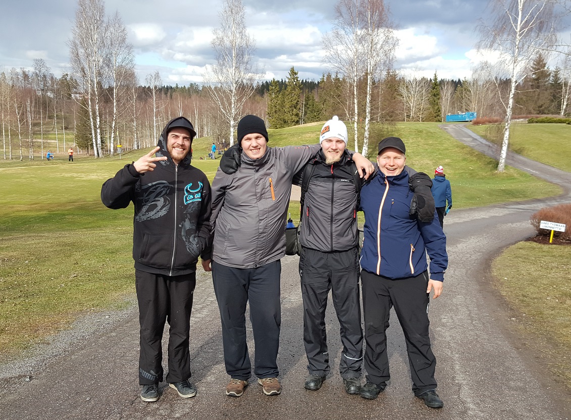 Vuonna 2016 yksi pelikierros kesti noin 5 tuntia ja aloitettuamme pelaamisen noin klo 9.15 päätimme kierroksen vasta 14.15. Tässä vaiheessa seurasi keskeytyksiä kun Jeren ja Teemun mehut loppuivat ensimmäiselle kierroksen jälkeen pitkän frisbeegolfin pelaamistauon jäljiltä. Villellä niskakivut veivät pelinautinnon, joten neljästä vain yksi jaksoi pelata loppuun asti. Go Jesse!