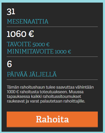 Mesenaatti.me -palvelussa oleva joukkorahoituksemmme minimi on täyttynyt!