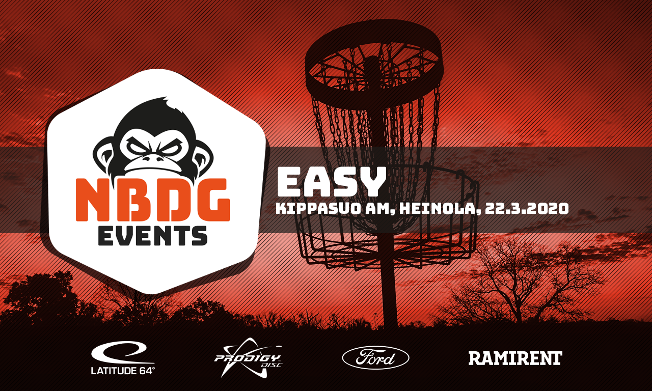 Natural Born Disc Golfer ja Lords of Disc Golf järjestävät yhteistyössä NBDG Easy -tapahtuman sunnuntaina 22.3.2020 Kippasuon AM-radalla, Heinolassa. Kilpailu on suunnattu erityisesti kilpauraansa aloitteleville ja ei-niin-tosissaan pelaaville kokeneemmille pelaajille. Osallistuminen on juniori-pelaajilta maksutonta. Kilpailuun osallistuminen edellyttää pelaajalta voimassaolevan kilpailulisenssin.