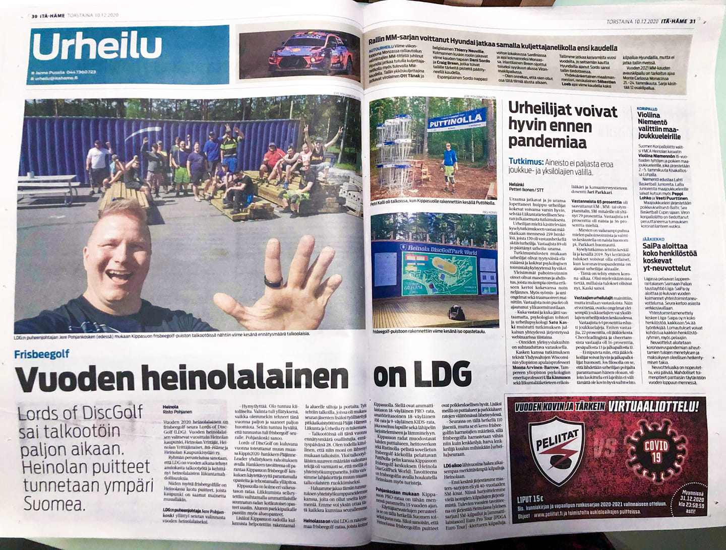 Heinolan kaupunki, Heinolan Yrittäjät, Heinolan Yrittäjänaiset, Itä-Häme ja Heinolankaupunkisydän ry. ovat valinneet vuoden 2020 Heinolalaiseksi yksittäisen ihmisen sijaan kokonaisen LDG-yhdistyksen (Lords of DiscGolf ry).